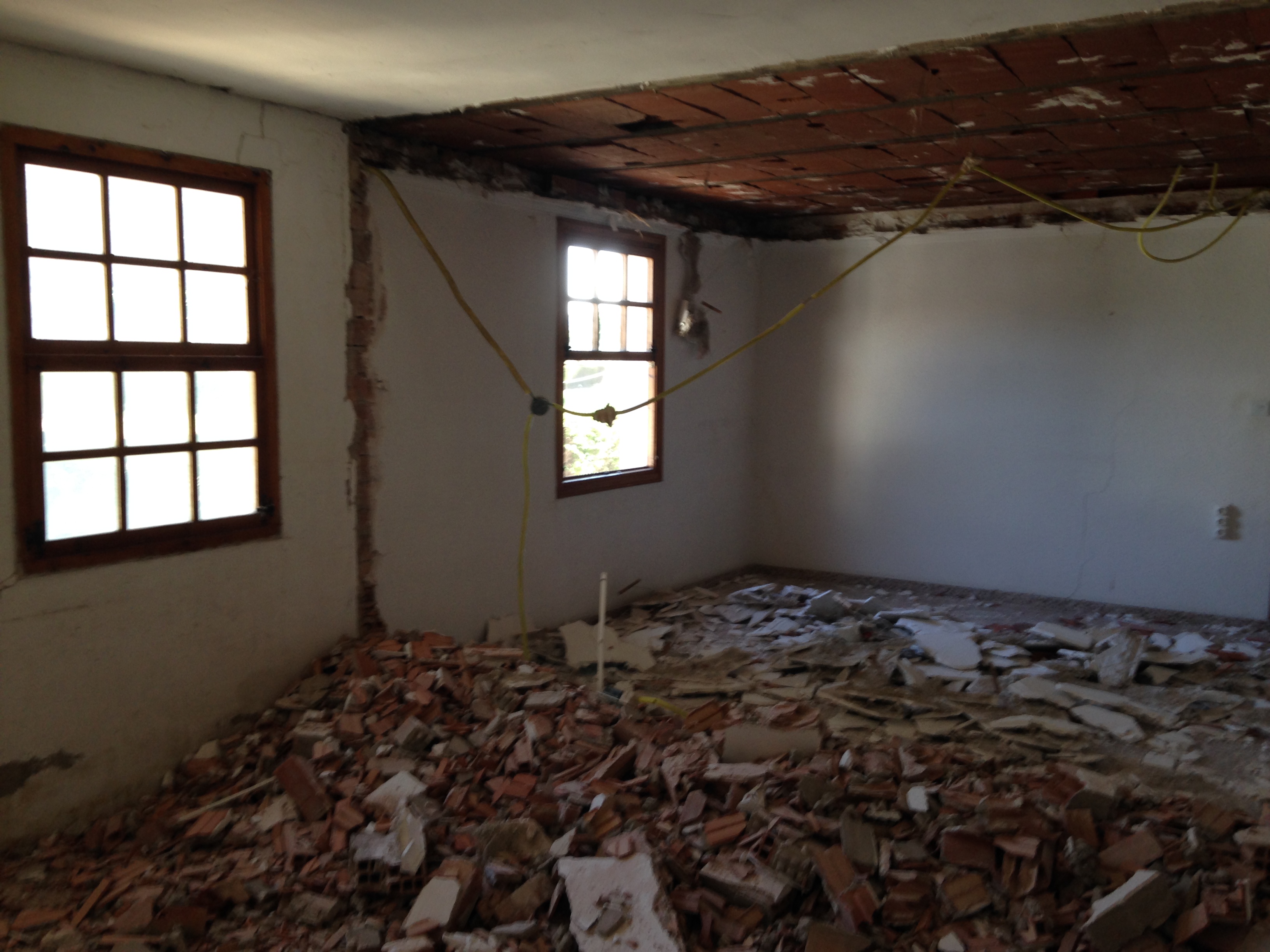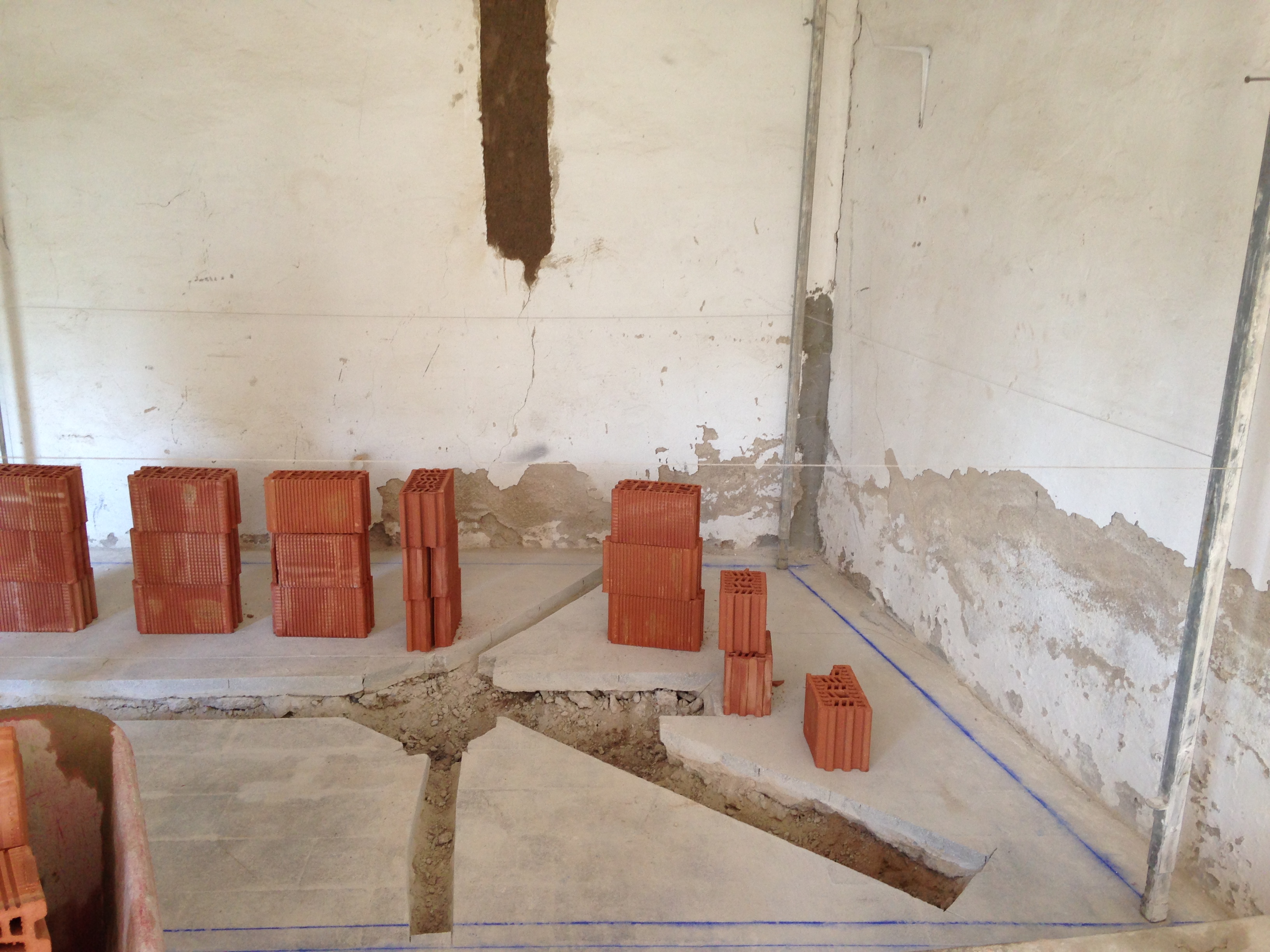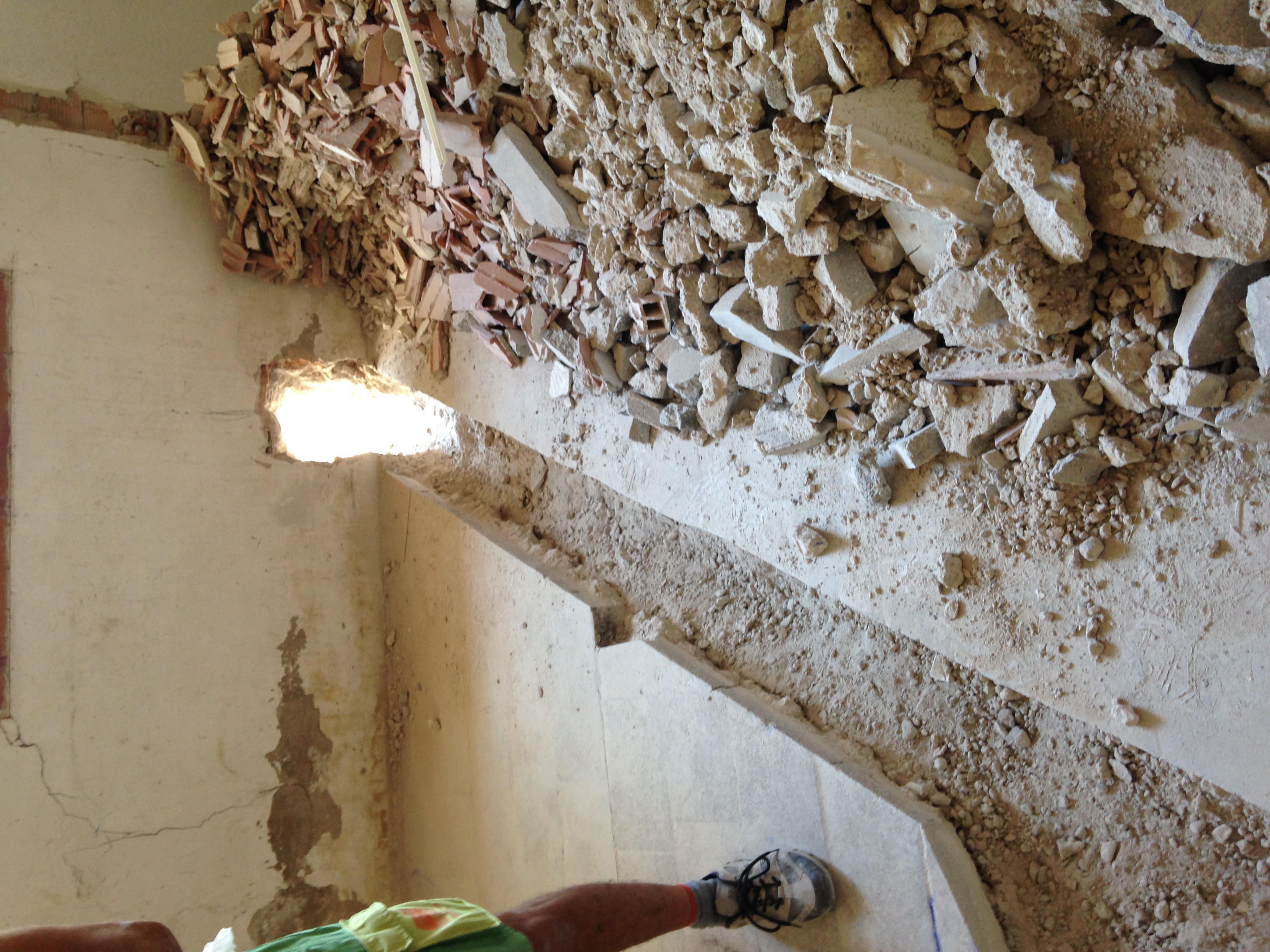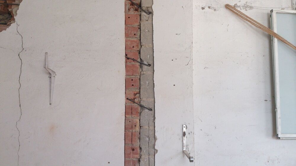 Se han colocado grapas en las fisuras de los muros de fachada y se van a levantar muros de carga para aligerar el peso de los forjados a los muros existentes.
