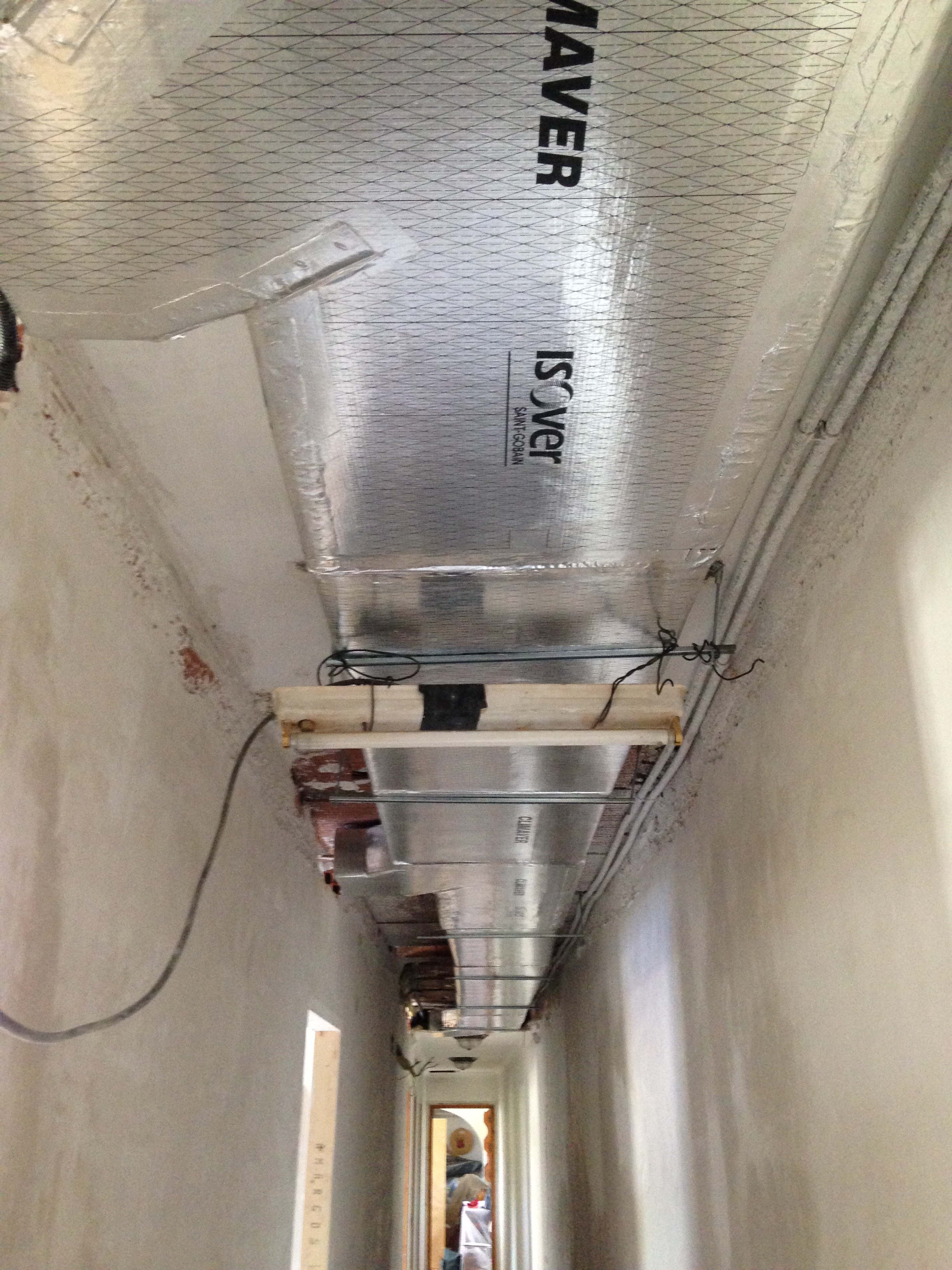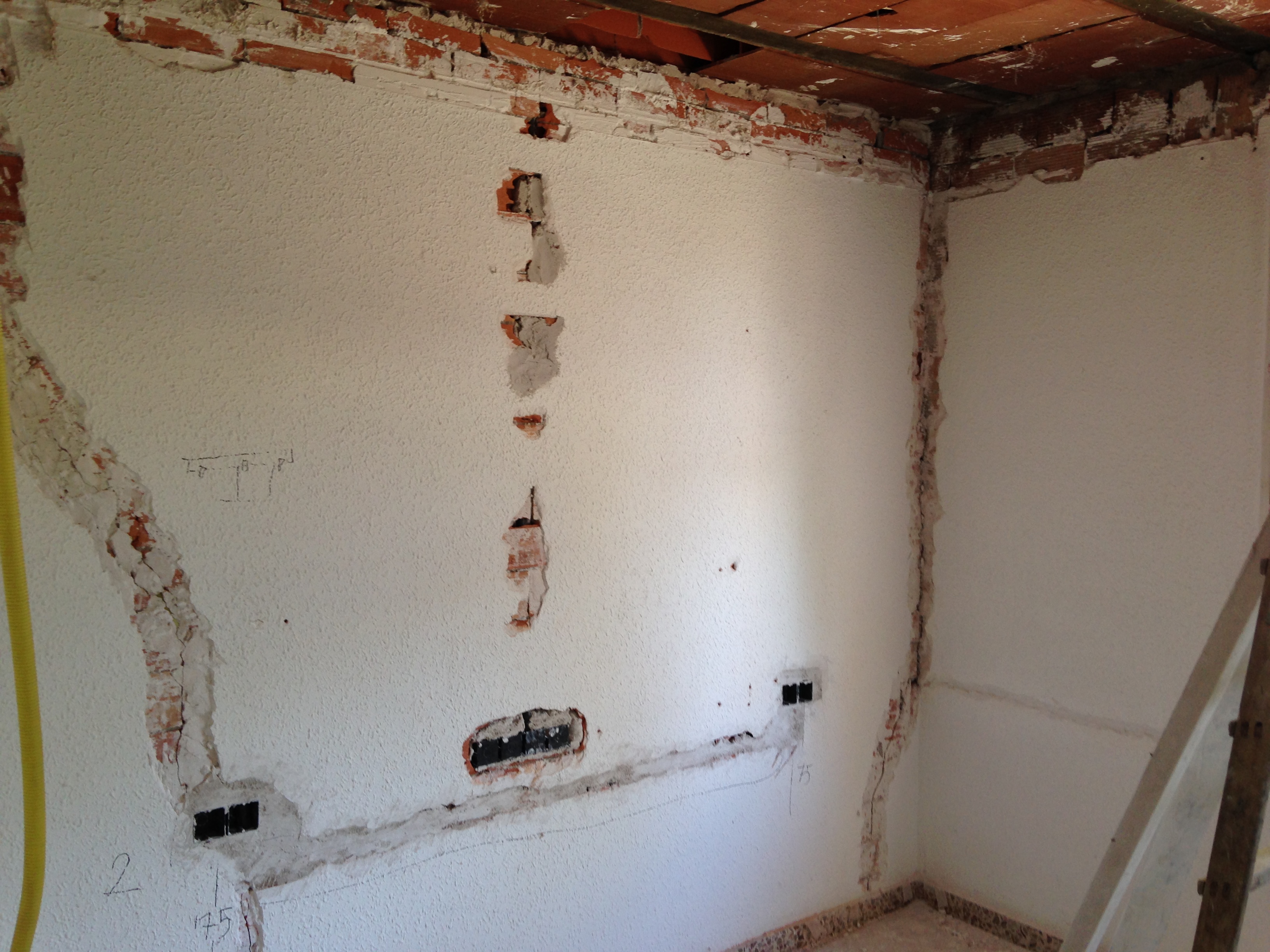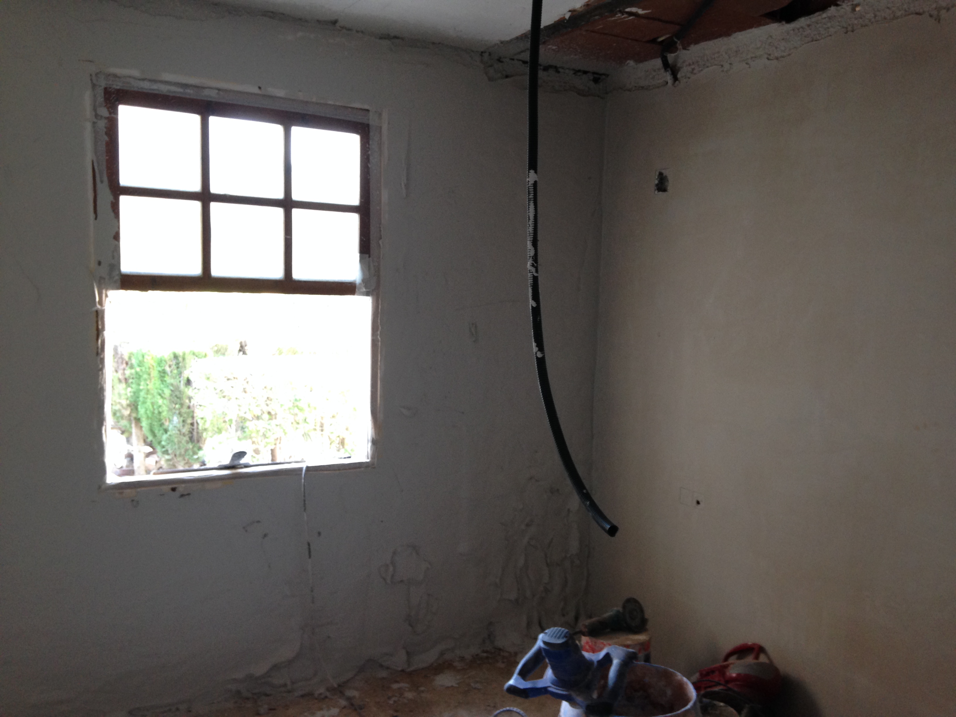 Se han enlucido todas las habitaciones y el pasillo con yeso proyectado.