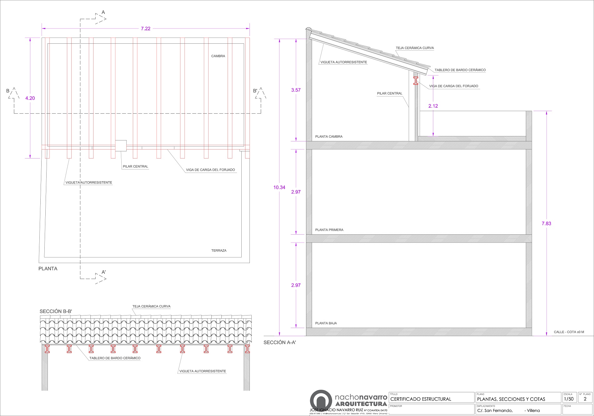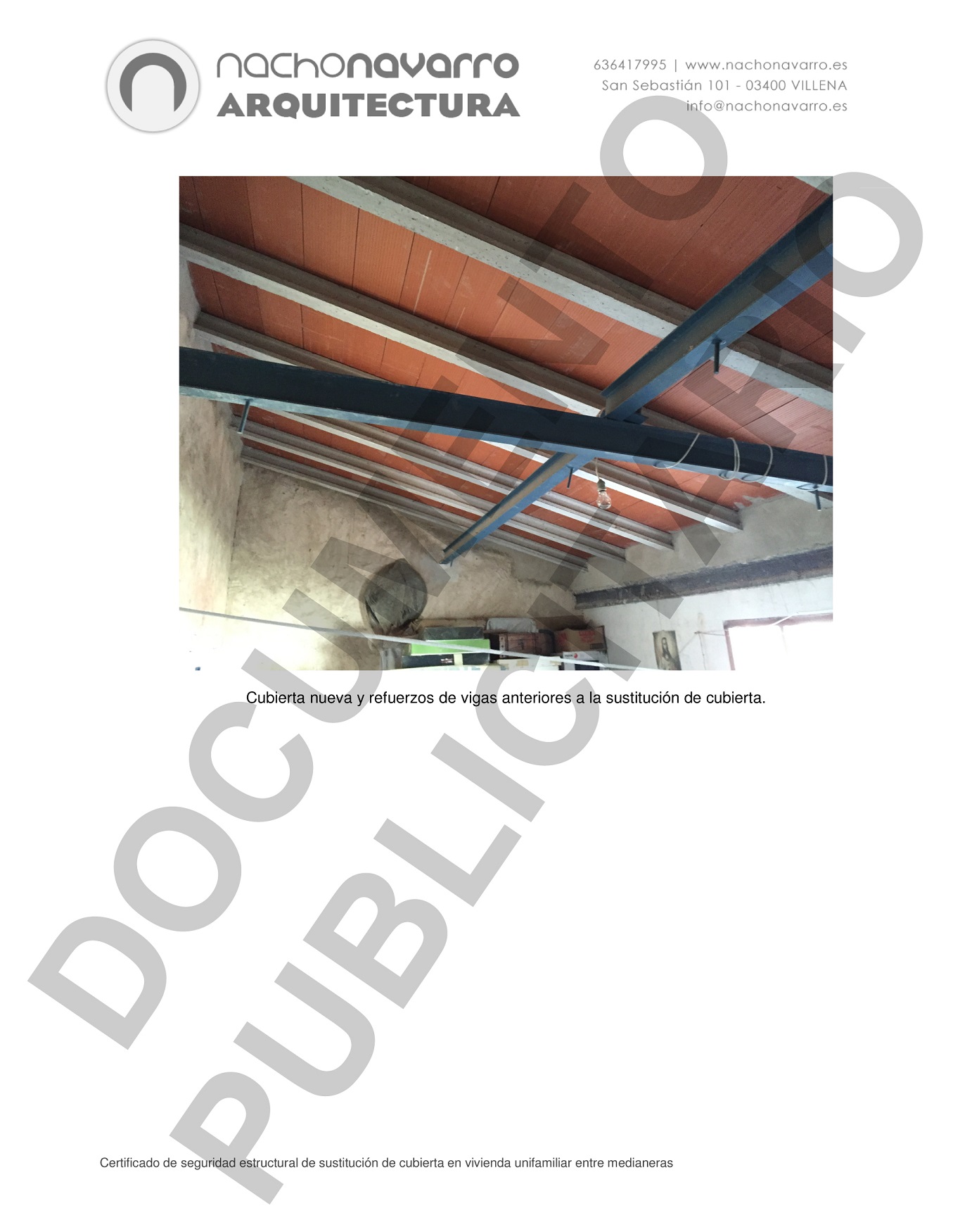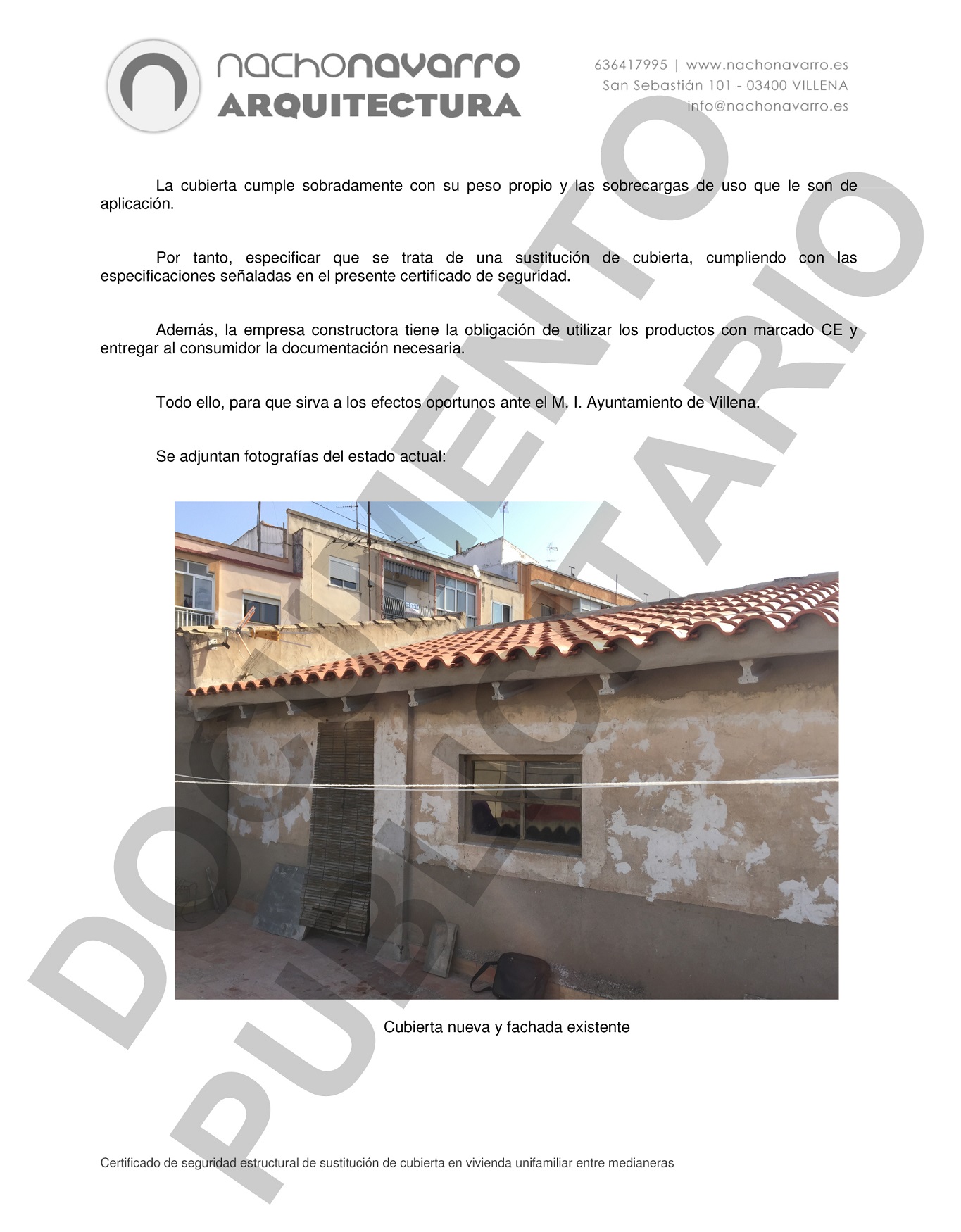 Certificado de seguridad estructural para cambio de cubierta realizado en vivienda unifamiliar entre medianeras en Villena (Alicante).