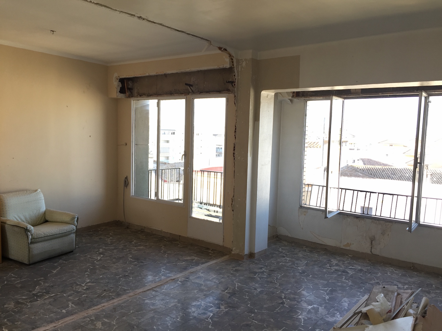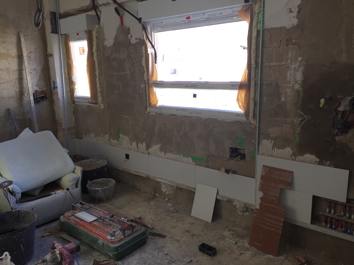 Se han sustituido todas las instalaciones, electricidad, fontanería y saneamiento, y además se ha realizado la instalación de calefacción en toda la vivienda. También se ha sustituido la carpintería exterior y la interior.