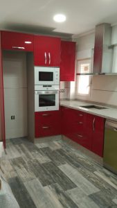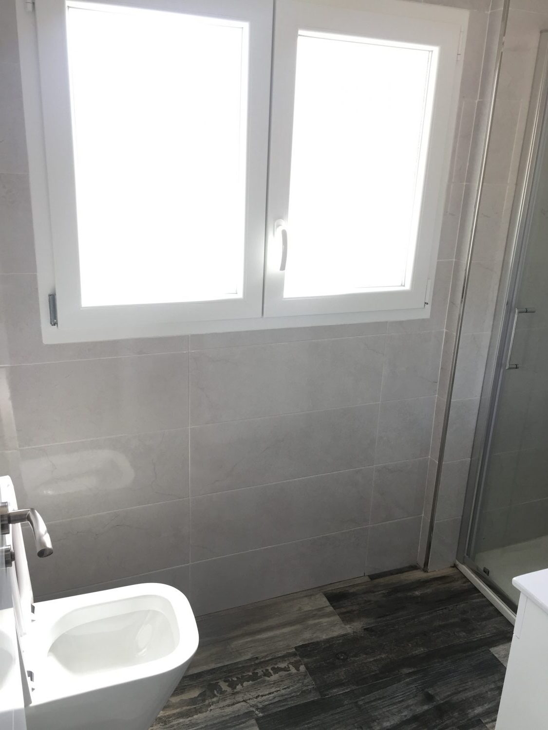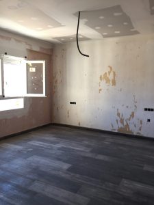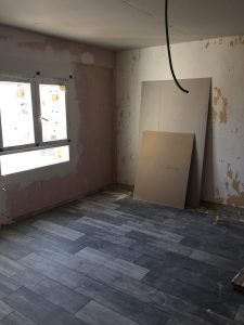Se han alicatado baños y cocina y se ha pavimentado toda la vivienda con suelo de gres porcelánico imitación madera.