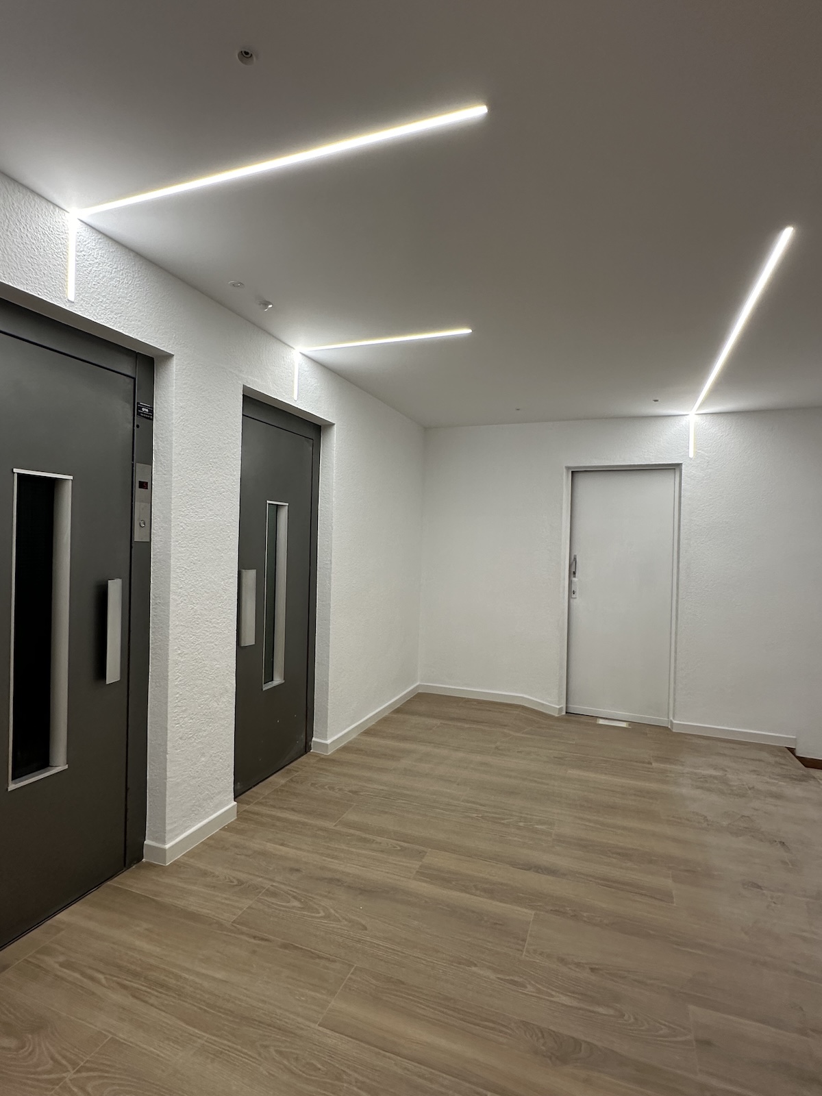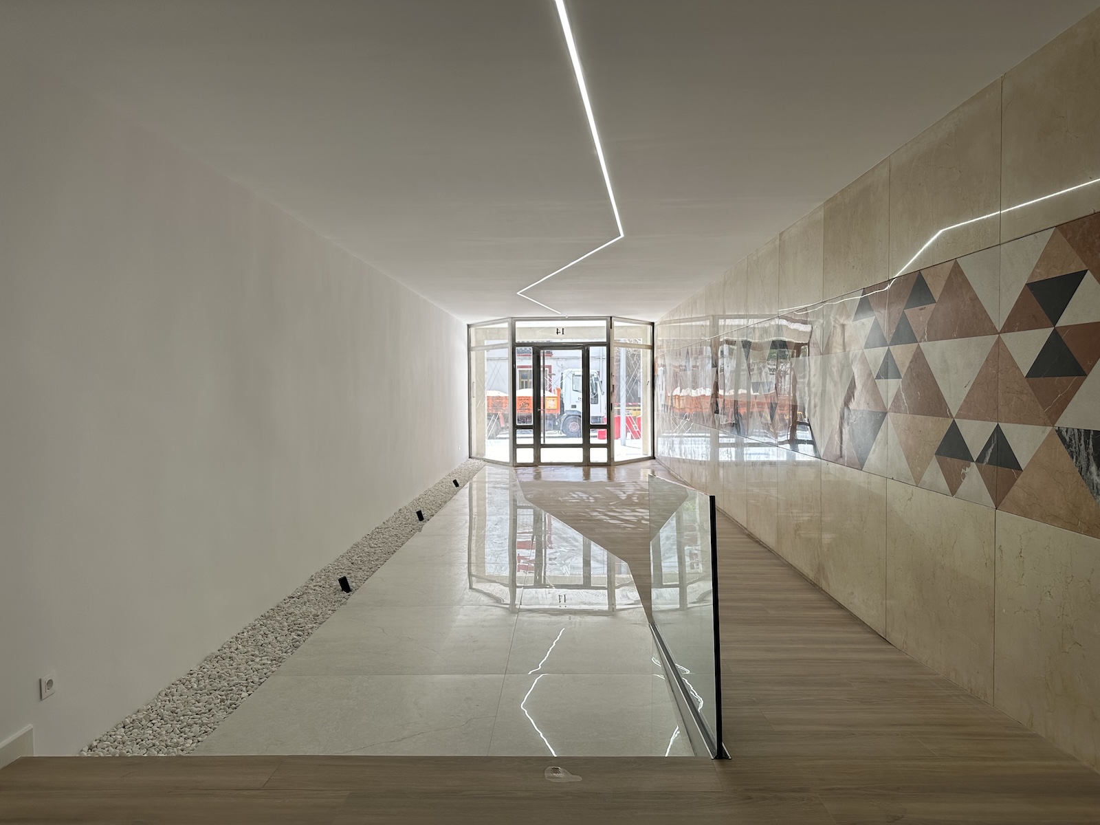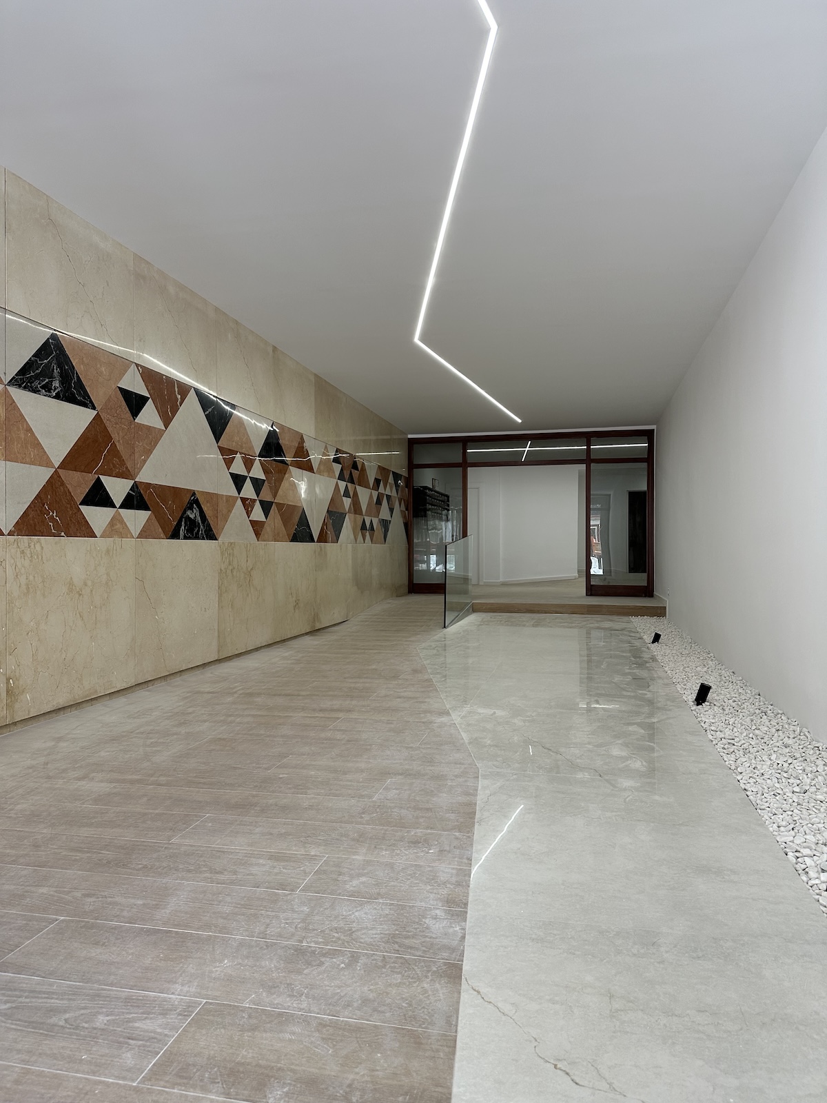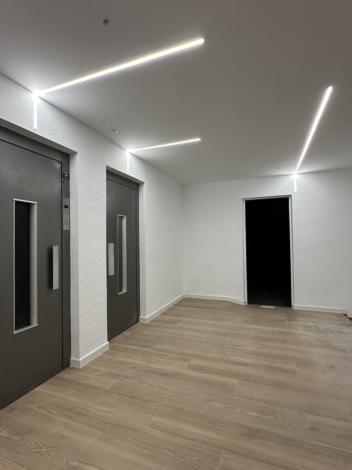 También se ha mejorado la iluminación de todo el zaguán, zonifícando con diferentes luminarias y dotando al sistema de relojes y crepusculares que permiten que el zaguán siempre tenga un mínimo de iluminación para usuarios.