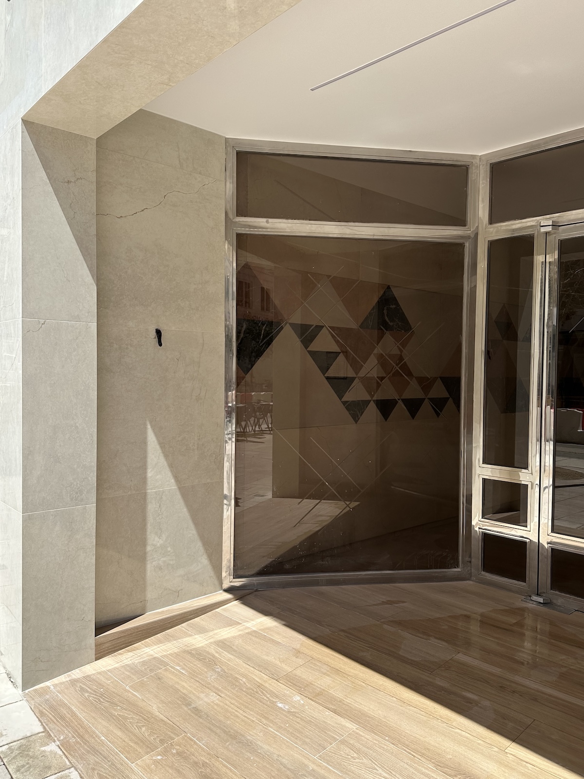 La comunidad solicitó mantener un mural de mármol existente, de más de 50 años de antiguedad, que se ha integrado con la nueva disposición de los accesos.