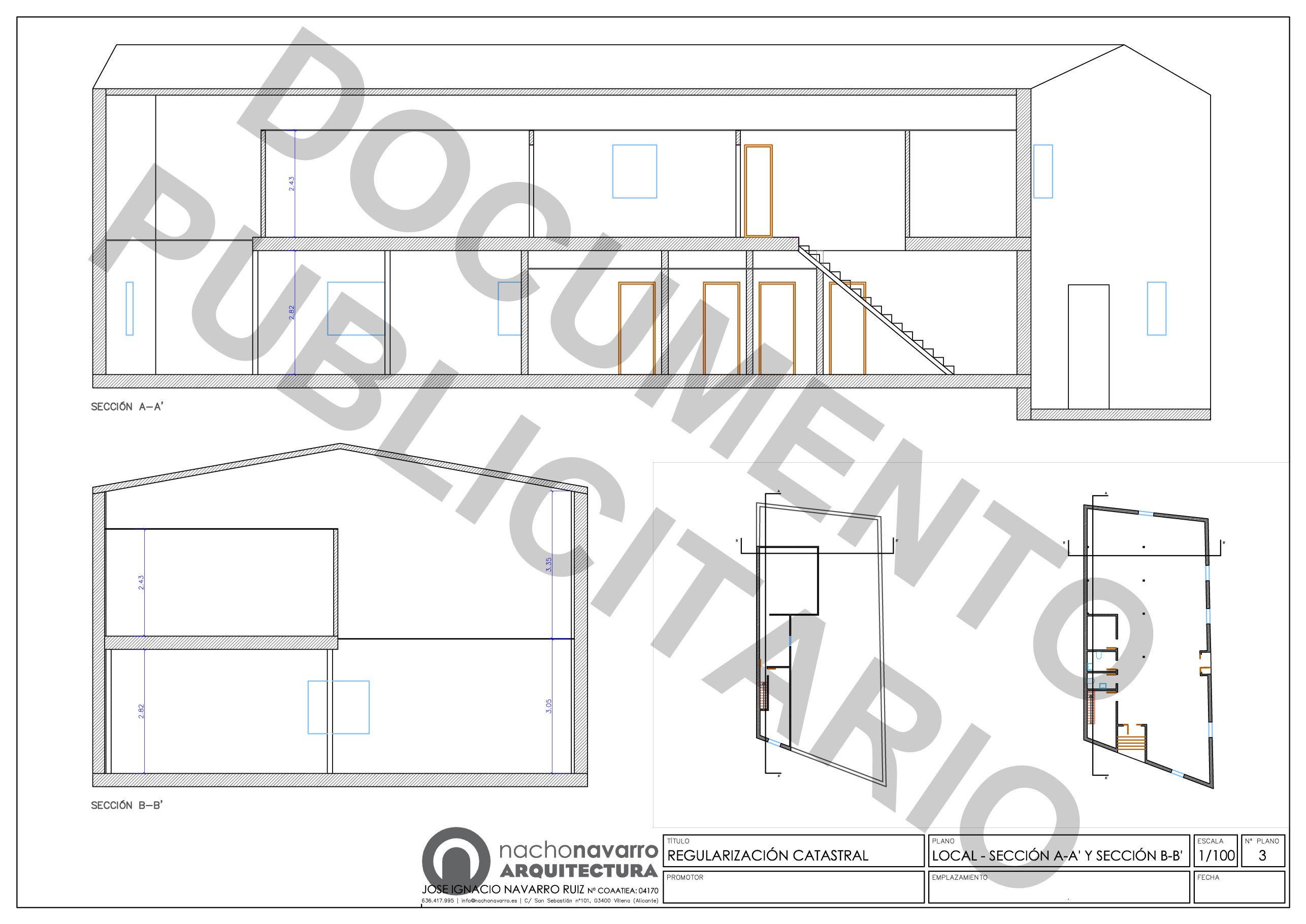 En este caso se han realizado los planos de un local comercial para demostrar que los metros de superficie que ha modificado catastro mediante foto aérea eran erroneos.