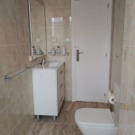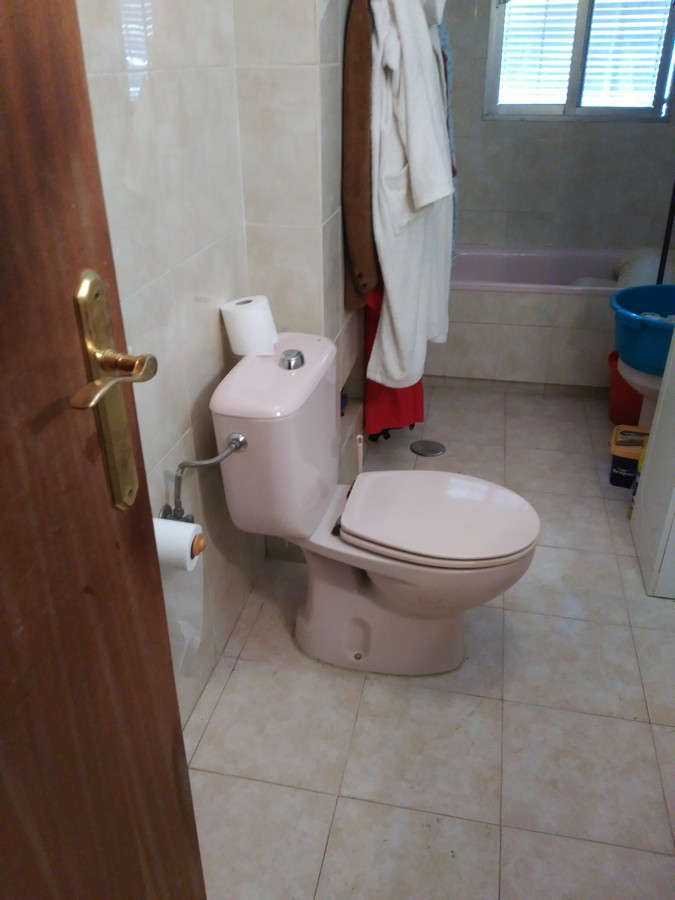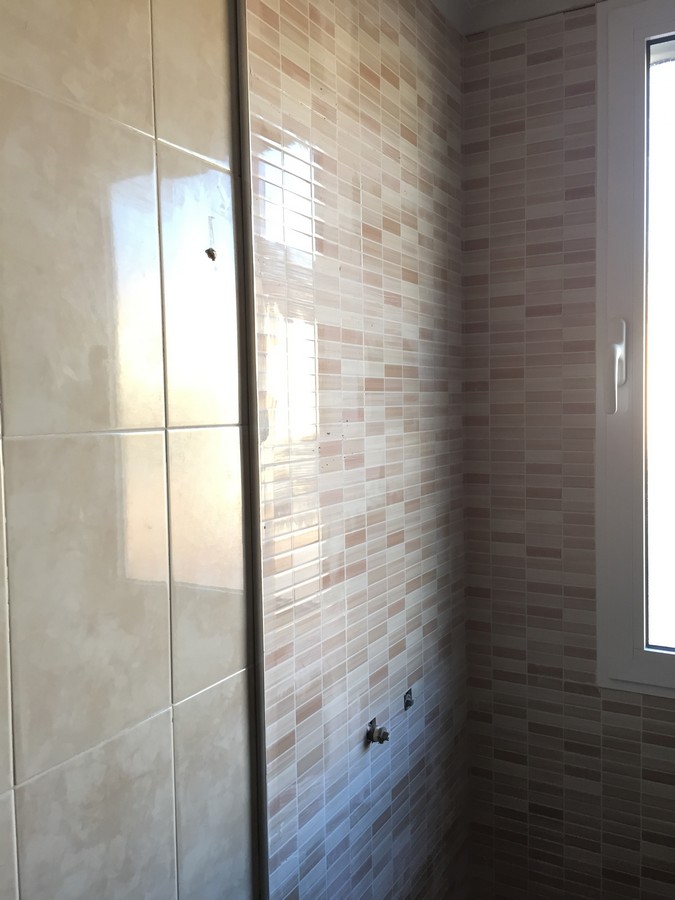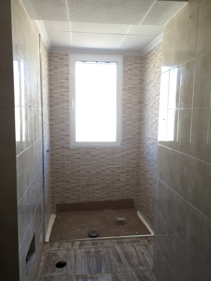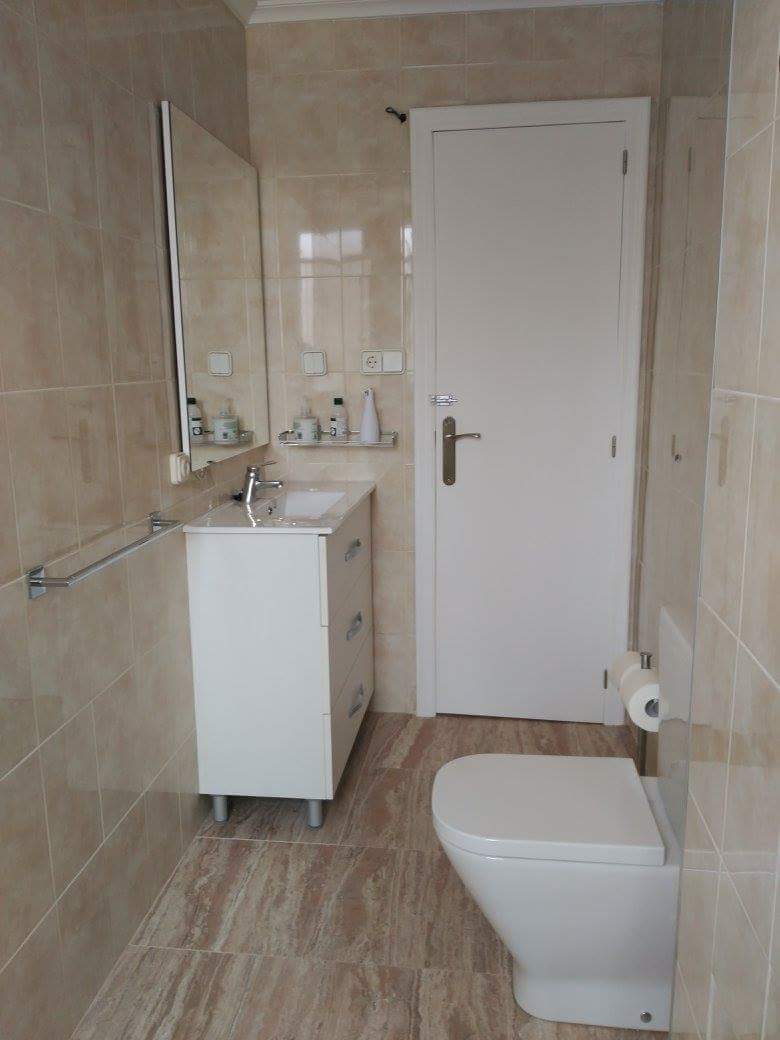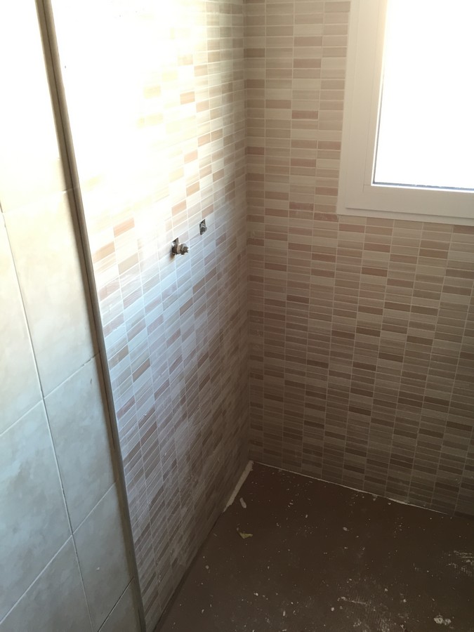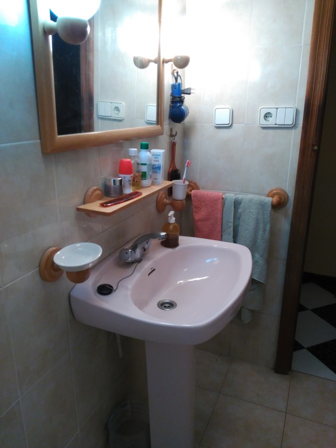 Ha sido adaptado para persona mayor, eliminando la bañera existente y sustituyéndola por un plato de ducha instalado a raso del suelo para evitar escalones.