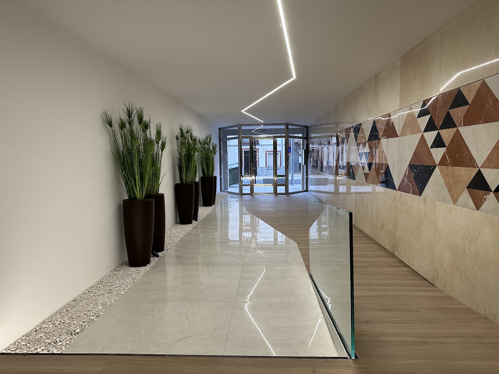 Aprovechando las obras, existía un alicatado deficiente en la zona del balcón, el cual se ha sustituido por mortero monocapa blanco para evitar riesgos y que quedara totalmente integrado en la fachada actual de la comunidad de vecinos.