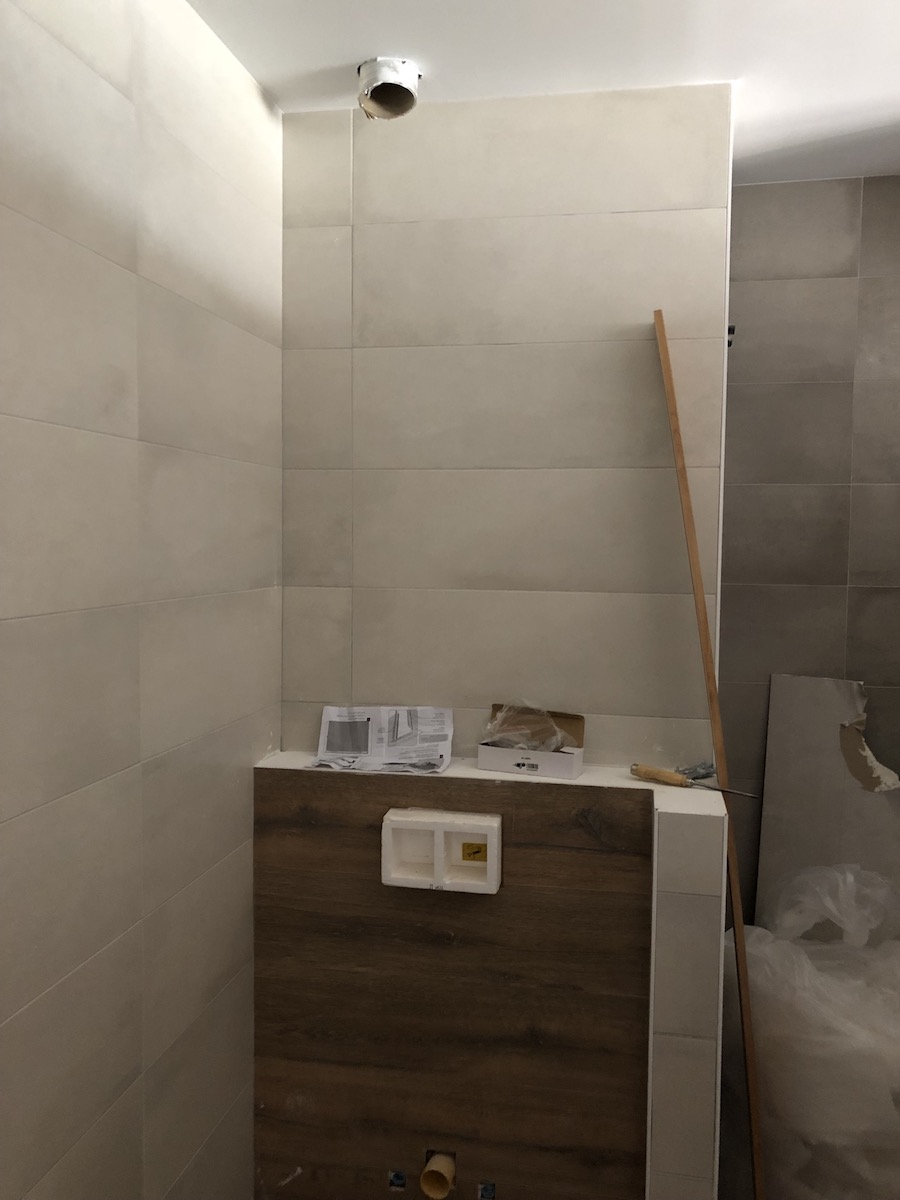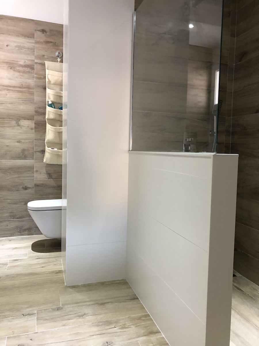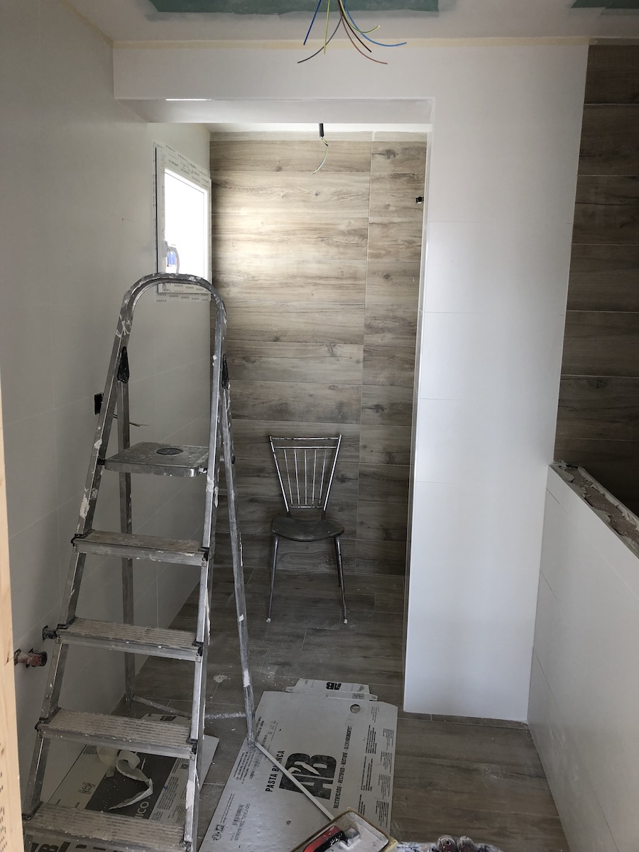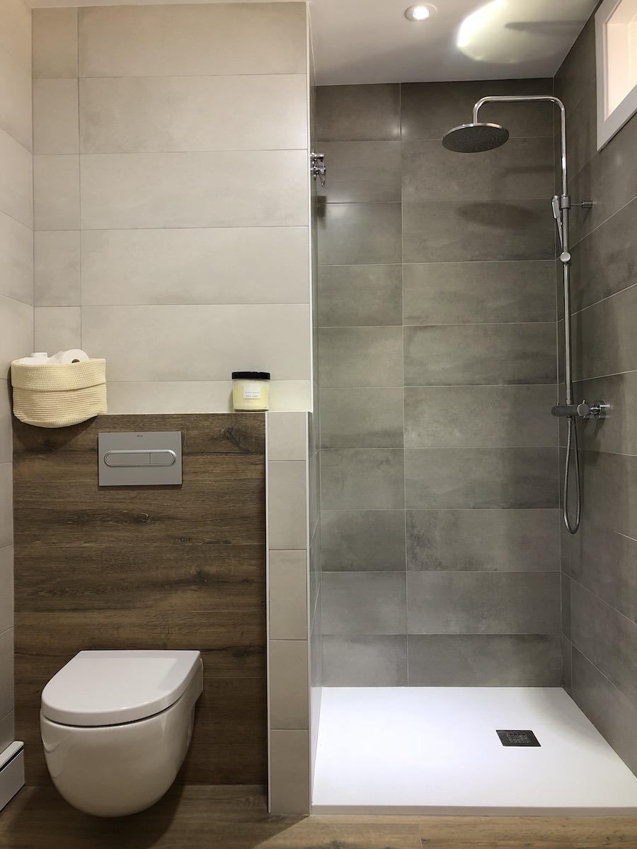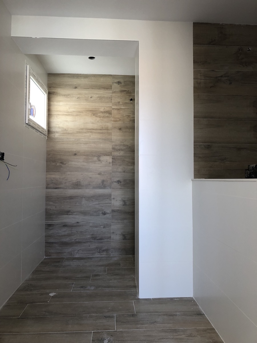 En el baño de matrimonio se ha ejecutado el plato de ducha de obra. En ambos baños se ha colocado el inodoro con cisterna empotrada.