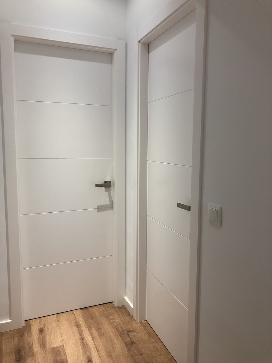 La carpintería exterior de toda la vivienda se ha colocado en PVC y cristal con cámara. La carpintería interior es toda de madera blanca.