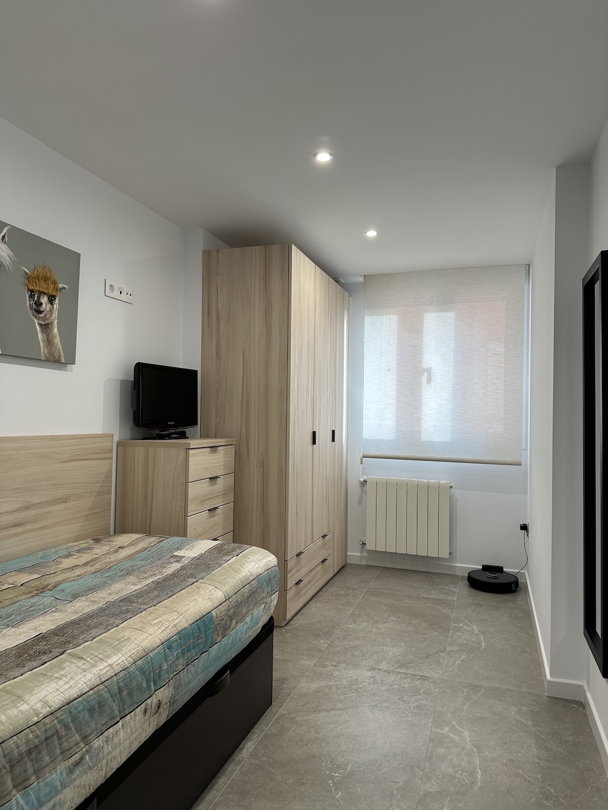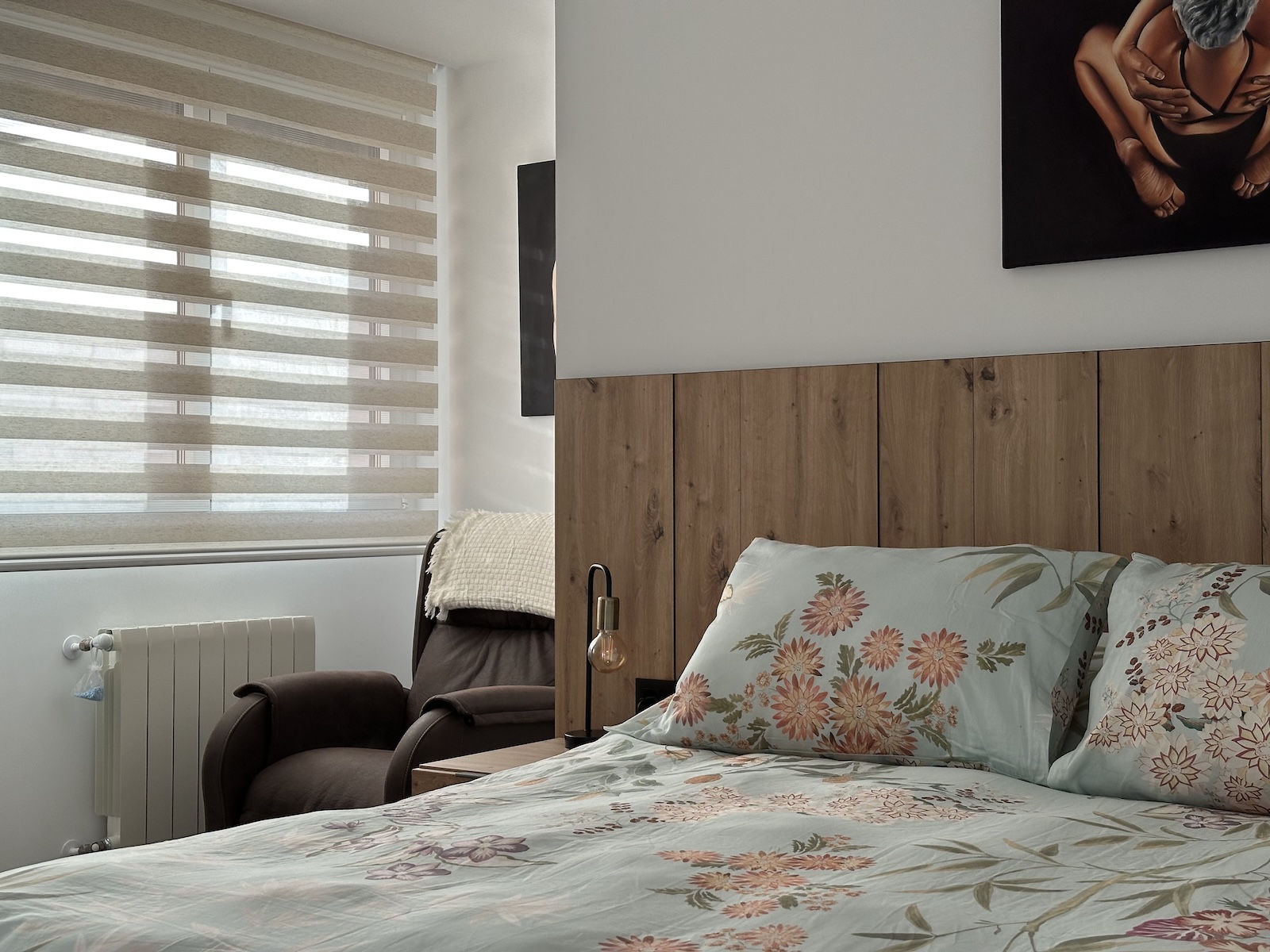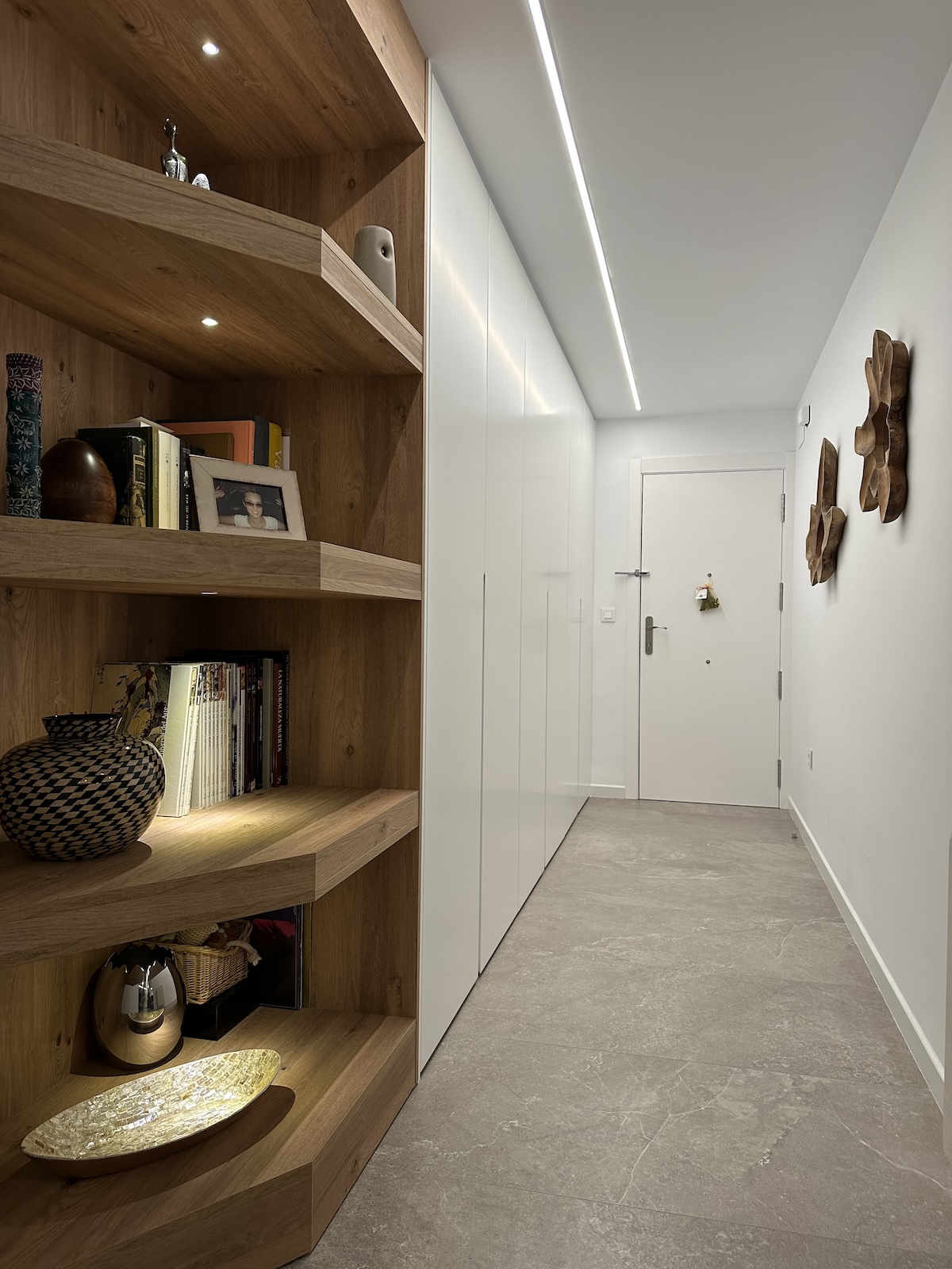 Se han reformado totalmente la vivienda, cambiando de ubicación un baño y el dormitorio principal, eliminando el pasillo existente que tenía unos 16 m2, obteniendo con la nueva distribución un pasillo de apenas 8 m2, dotando los espacios según las necesidades de los promotores.