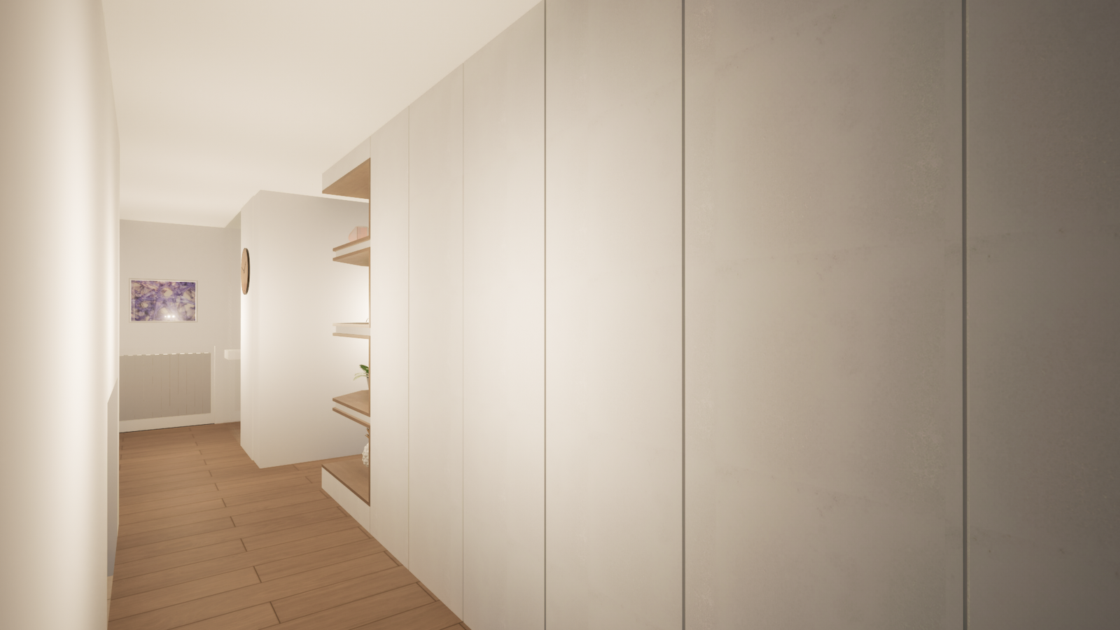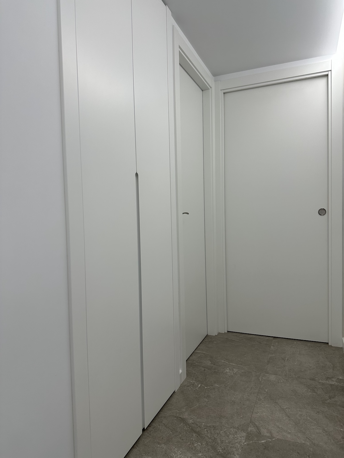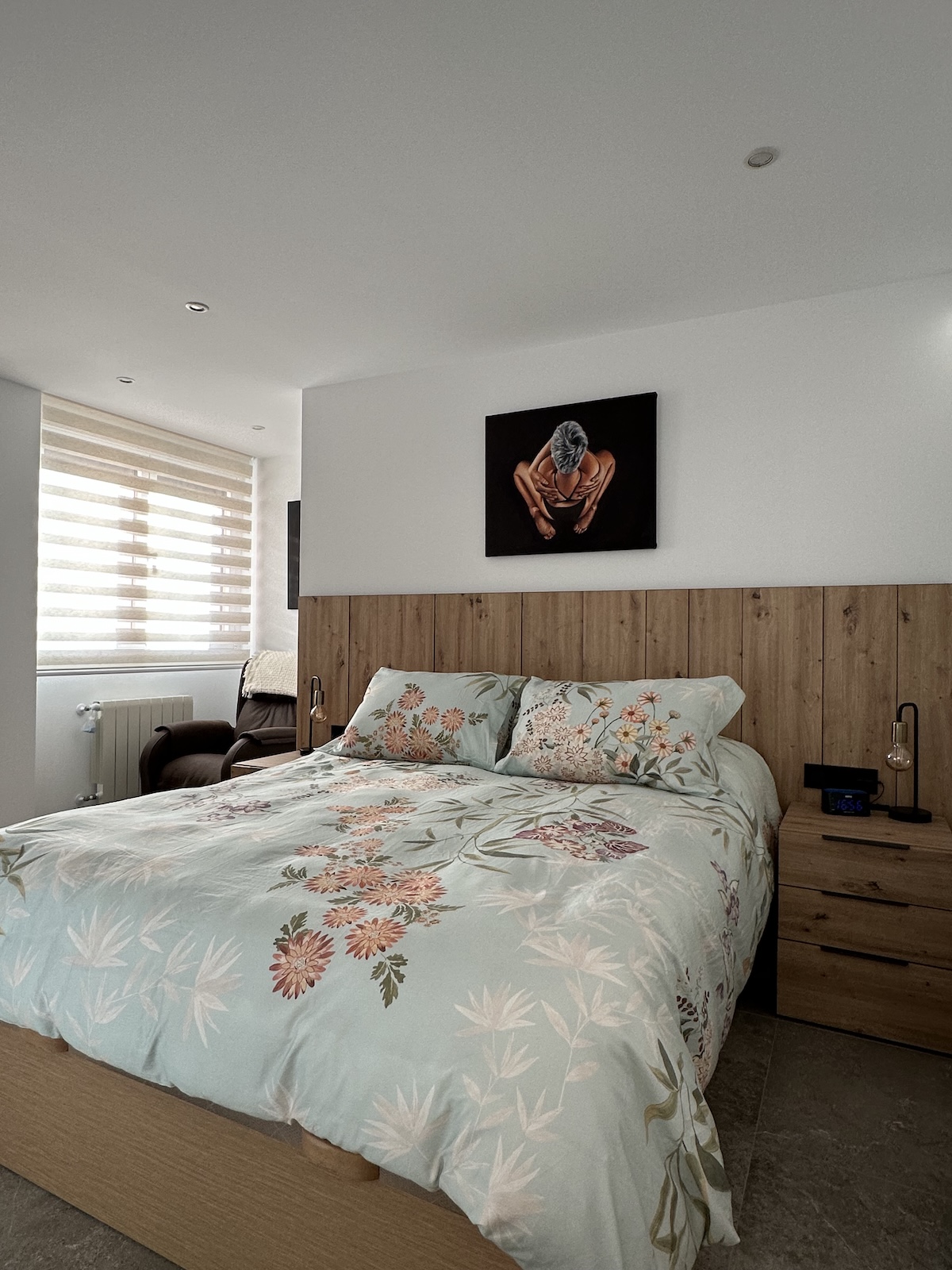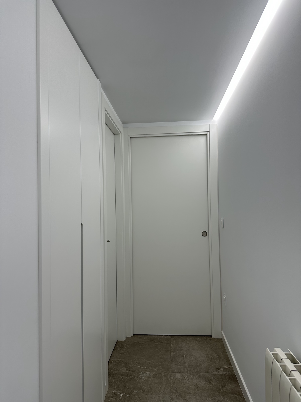 Se han reformado totalmente la vivienda, cambiando de ubicación un baño y el dormitorio principal, eliminando el pasillo existente que tenía unos 16 m2, obteniendo con la nueva distribución un pasillo de apenas 8 m2, dotando los espacios según las necesidades de los promotores.