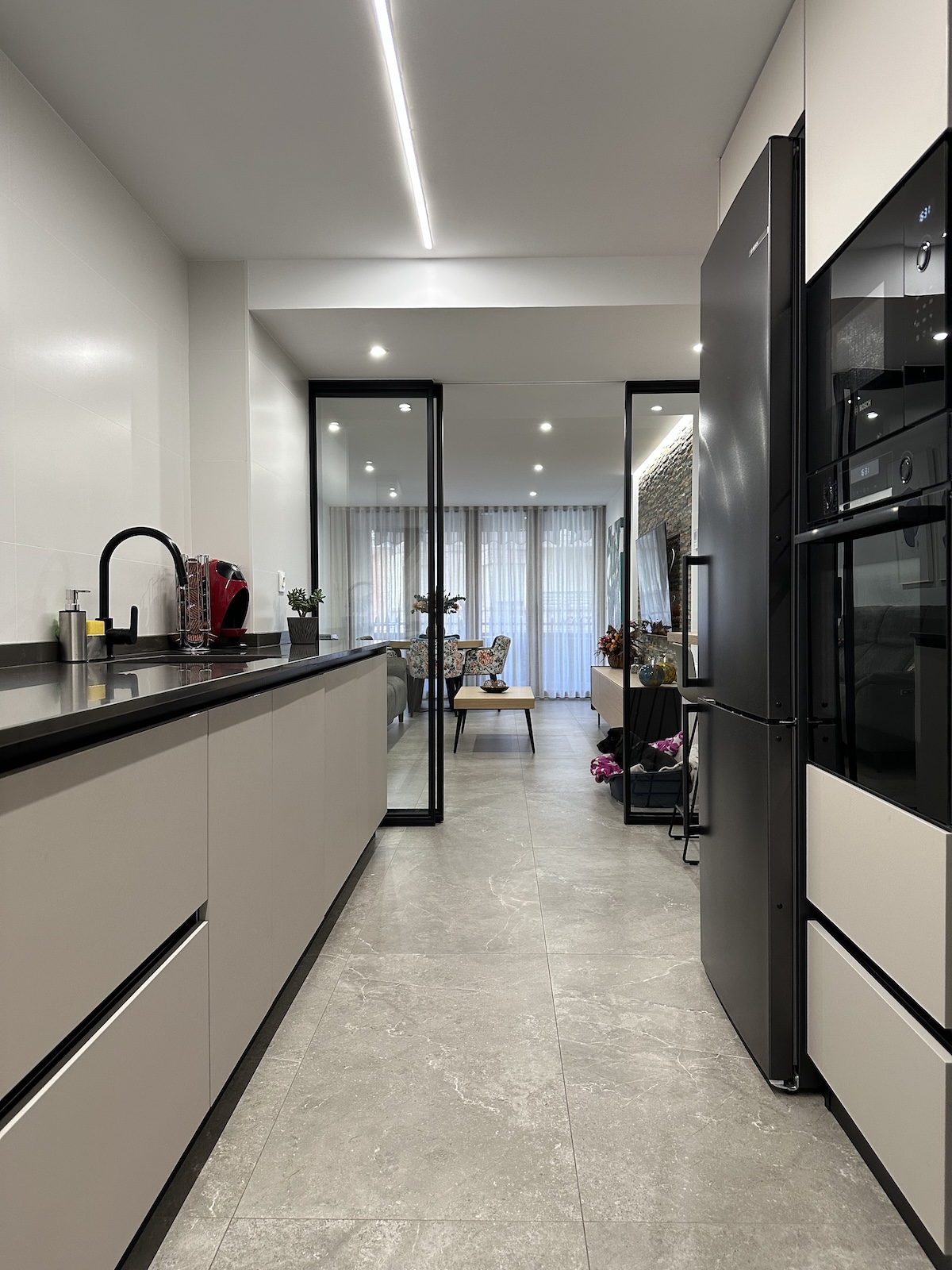 La duración de la obra ha sido de 5 meses, desde que se eliminó la tabiquería existente hasta que se instalaron los electrodomésticos.