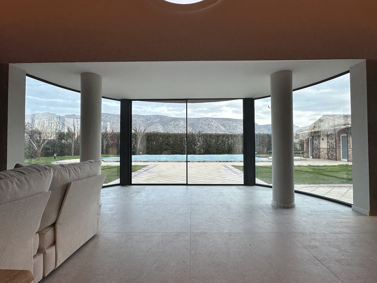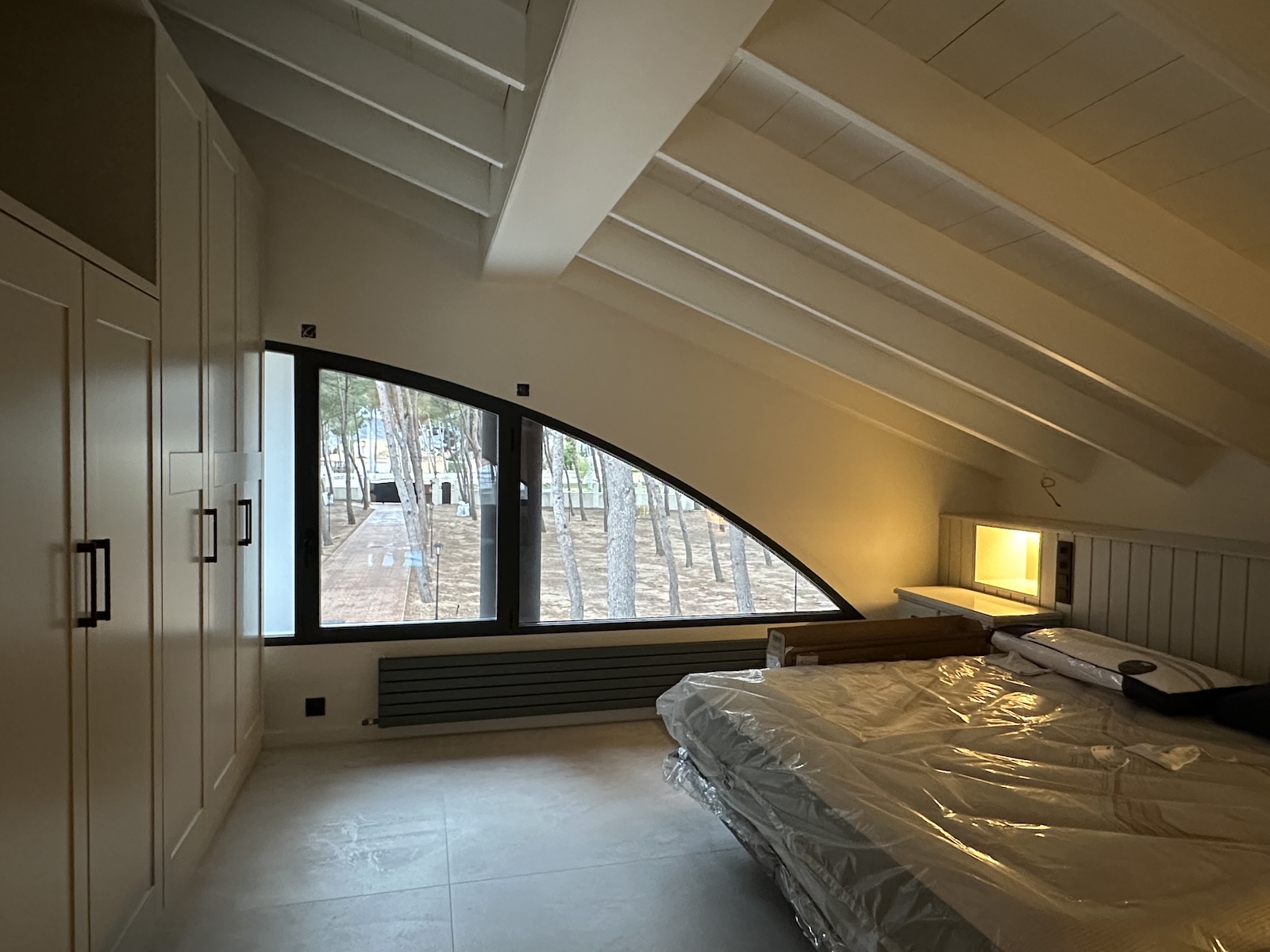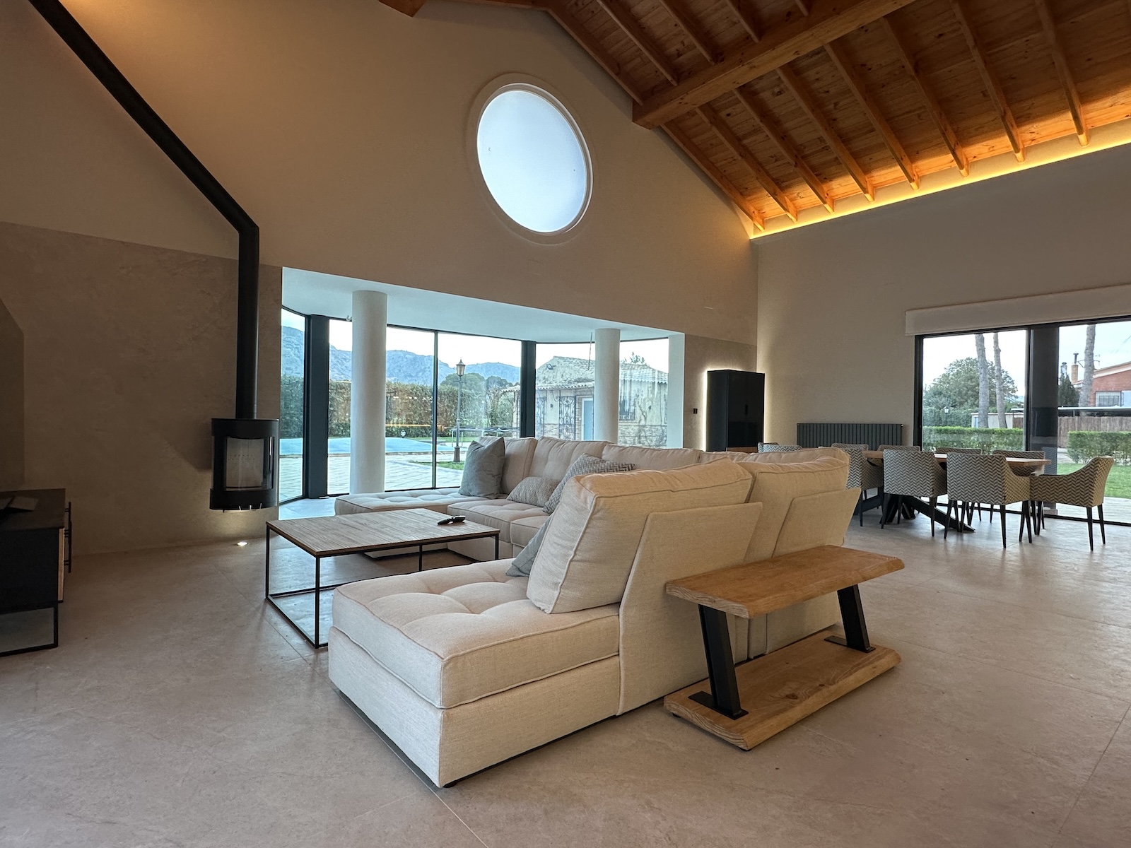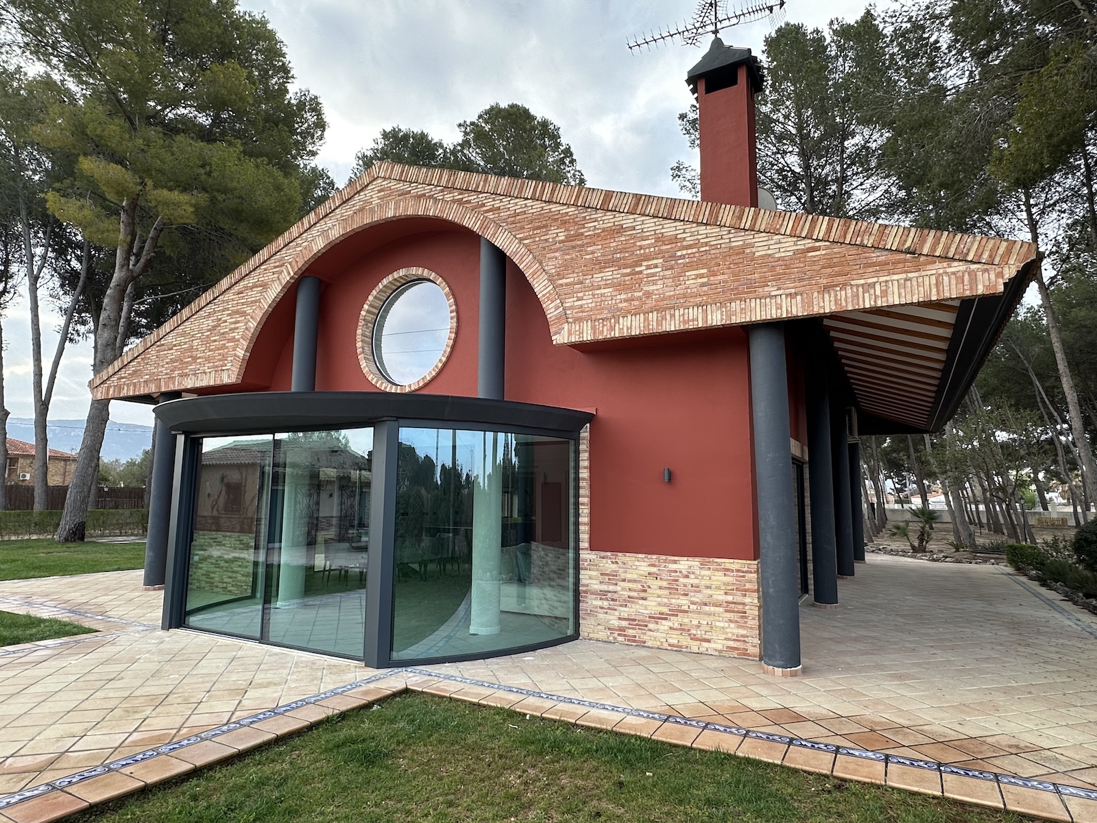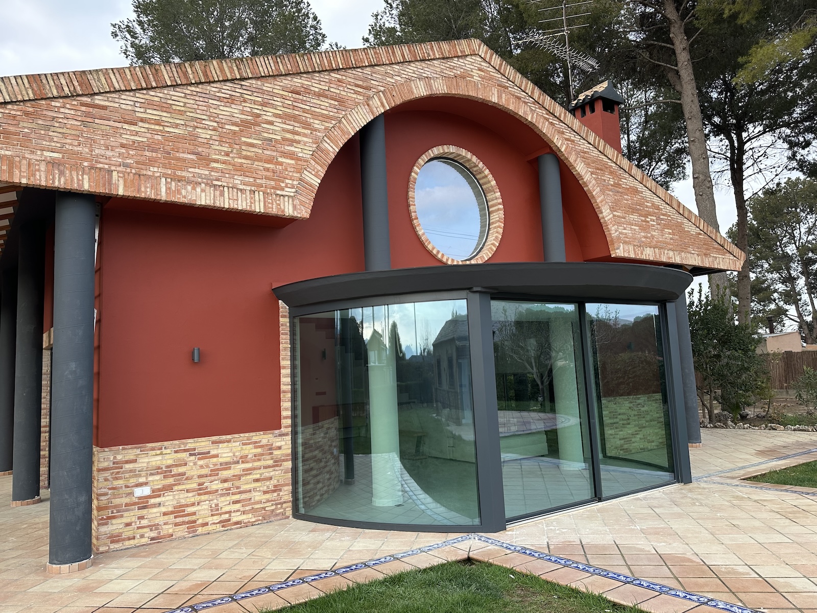 El protagonista de esta vivienda es el techo de madera machihembrado y su imponente estructura vista.