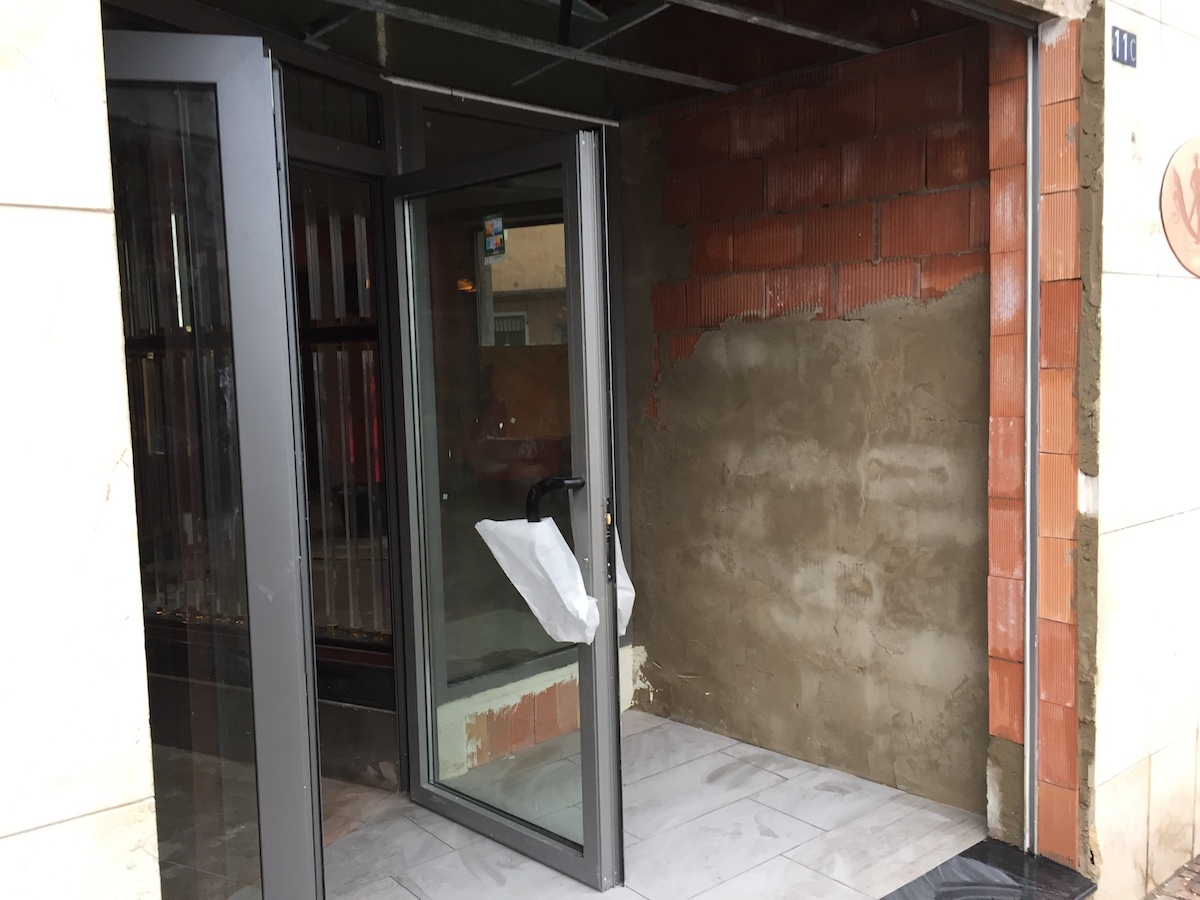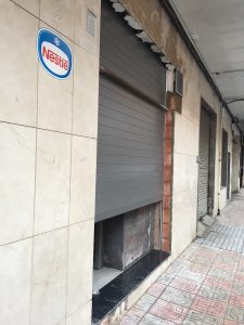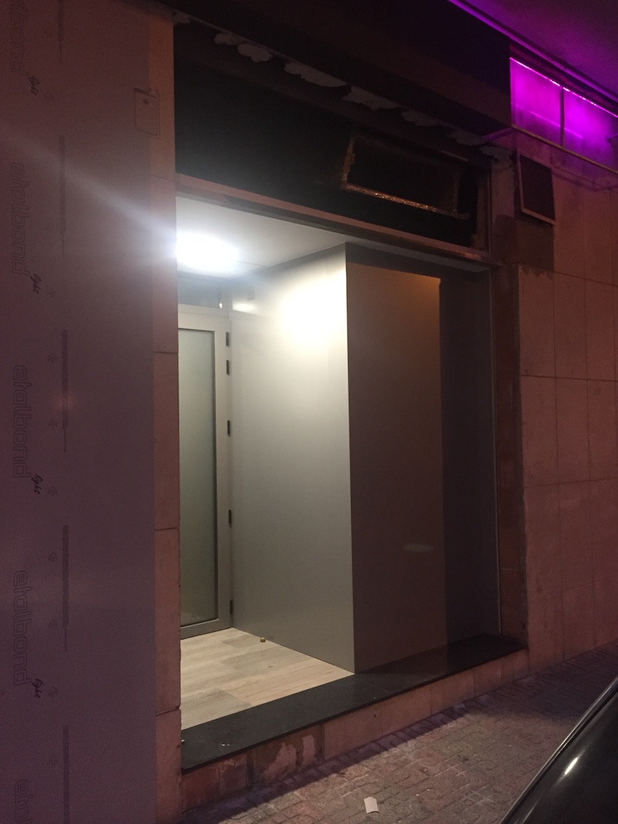 Se ha sustituido la carpintería exterior de todo el local colocando carpintería de aluminio lacada el color RAL, otorgándole mayor luminosidad al colocar únicamente vinilos glaseados con impresión de agua. Se han colocado vidrios de seguridad con componentes de baja emisividad para evitar altas temperaturas en el interior en temporadas de verano, así como evitar gasto elevado de calefacción en temporadas de invierno. También se han sustituido las persianas del local por persianas de aluminio lacado.