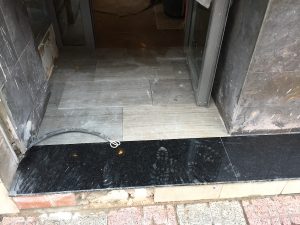 Se ha ampliado la zona de la entrada principal, se han sustituido los pavimentos de ambas entradas junto con sus portales. Los falsos techos de las dos entradas también se han sustituido colocando registros para acceder a las persianas y los motores de las mismas.